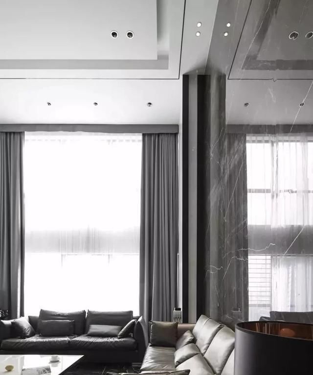 從墻面到地面、從沙發(fā)到窗簾,都統(tǒng)一以灰色為主調(diào),打造冷靜克制、平靜祥和的家居空間,再將高雅大理石、通透玻璃等材質(zhì)穿插其中,讓平淡的家煥發(fā)無限光彩!